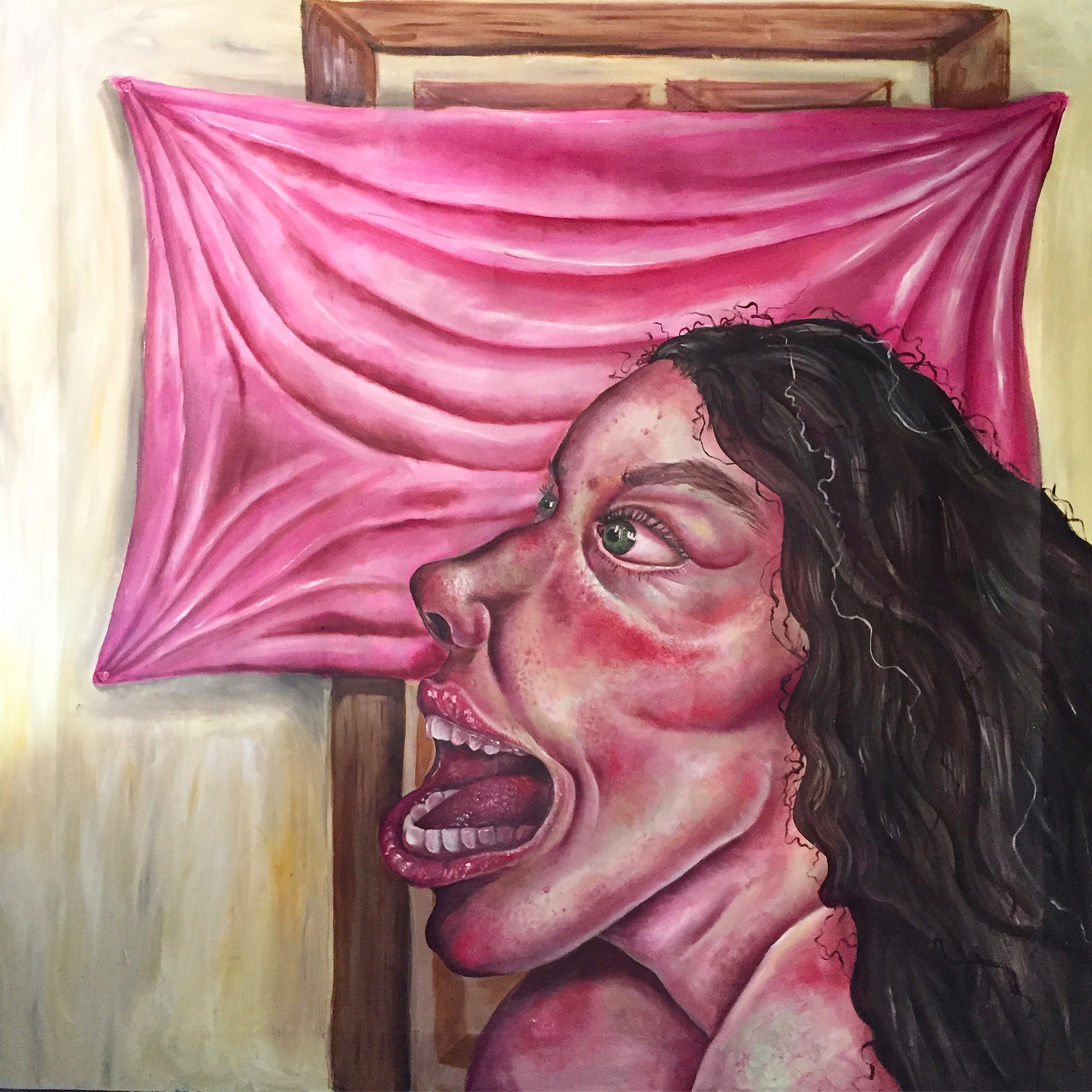 Oil paint on Stretched upholstery fabric, 46"x 54", 2020